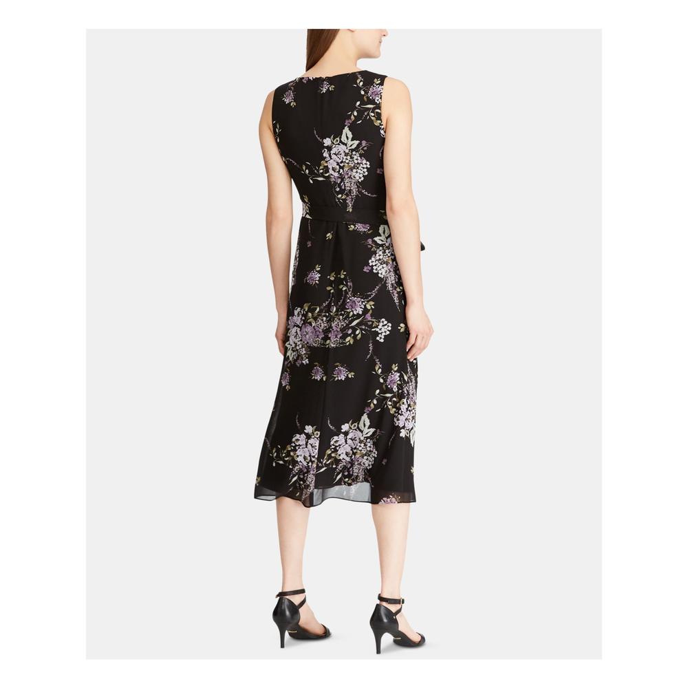 Ralph Lauren Ralph Lauren Womens Black Floral Sleeveless V Neck Midi Sheath Evening Dress Size 2p