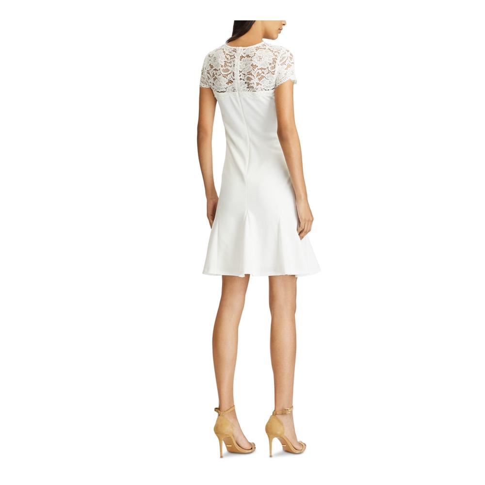 Ralph Lauren Ralph Lauren Womens White Lace Floral Short Sleeve Crew Neck Above The Knee Trapeze Evening Dress Size 6p