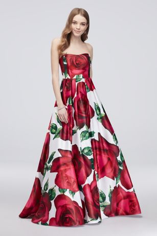 Floral Print Strapless Lace Up Satin Ball Gown David S Bridal